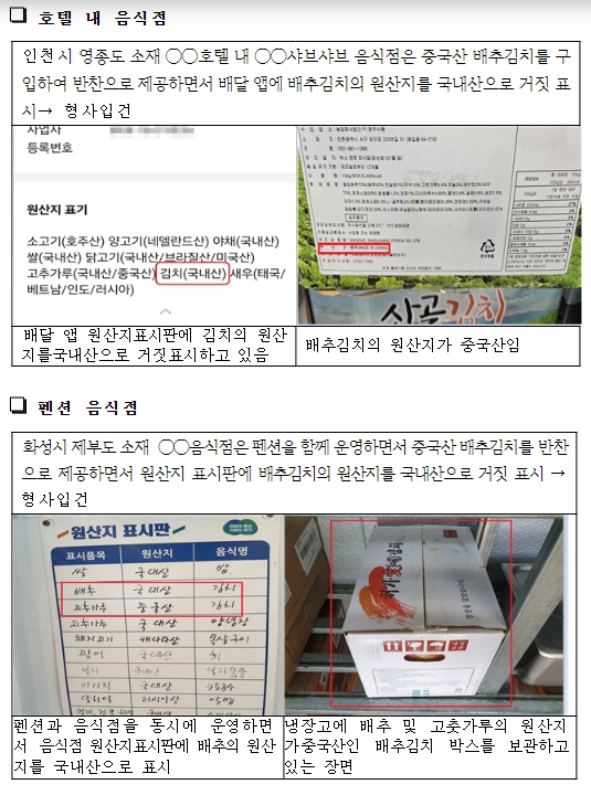 | ▲ 원산지 표시 위반 적발 사례 |