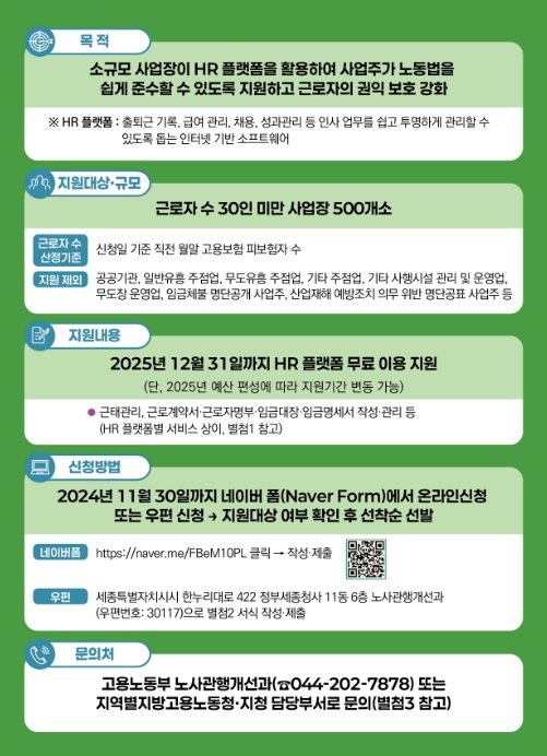 ▲ 소규모 사업장 HR 플랫폼 이용 지원 안내문 |
