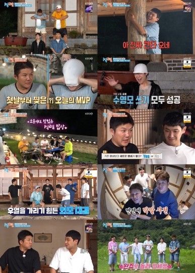 특히 물 담은 수영모를 씌워야 하는 3단계 미션을 좀처럼 넘어서지 못하자 제작진은 직접 시범을 보이며 꿀팁까지 전수했을 정도. 1시간이 넘는 도전 끝에 겨우 모든 미션을 성공한 멤버들은 화기애애하게 이야기꽃을 피우며 바비큐 저녁식사를 즐겼다.