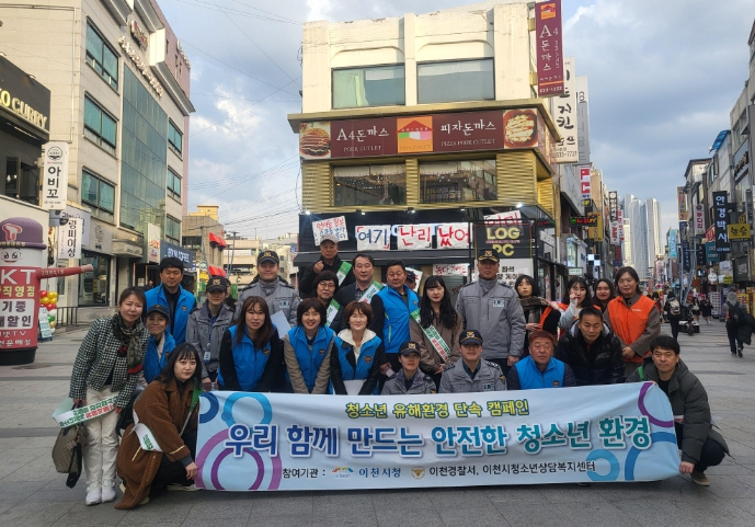 지난 3월 11일, 봄 개학기를 맞이하여 이천시 청년아동과, 이천경찰서 여성청소년과와 범죄예방대응과, 그리고 관내 민간 청소년유해환경감시단(한국B.B.S경기도연맹 이천시지회), 이천경찰서 청소년지도위원회, 이천시청소년재단, 이천시 여자단기청소년쉼터 등 36명이 참여하는 대대적인 민‧관 합동 캠페인을 펼쳤다.