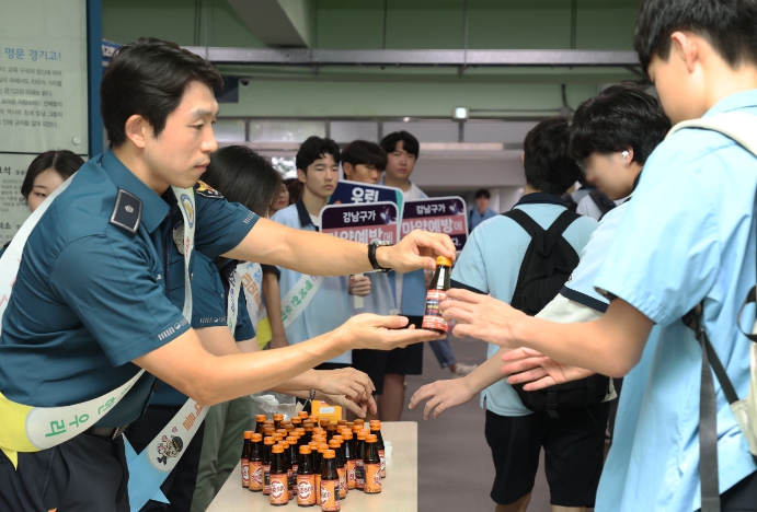[뉴스서울] 꿈이 모이는 도시, 미래를 그리는 강남구가 23일 경기고등학교에서 음료병 라벨을 활용한 ‘청소년 범죄예방 등하굣길 캠페인’을 진행했다.