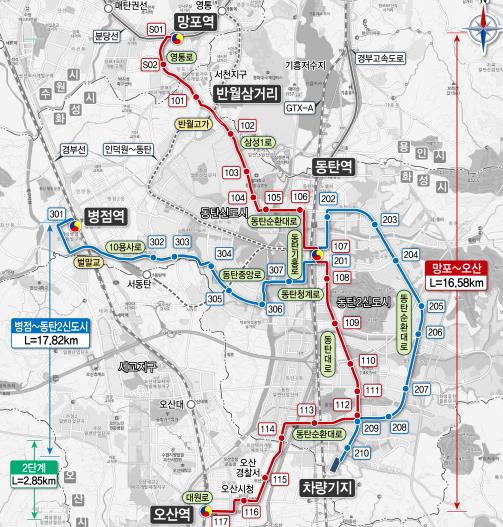 총사업비는 9,981억 원이며 망포역~동탄역~오산역, 병점역~동탄역~차량기지로 이어지는 2개 노선 34.4km 구간에 정거장 36개소와 차량기지 1개소를 건설한다. 34대의 차량(운행 28, 예비 6)을 9분 간격으로 운행할 예정으로 2028년 개통을 목표로 추진한다.