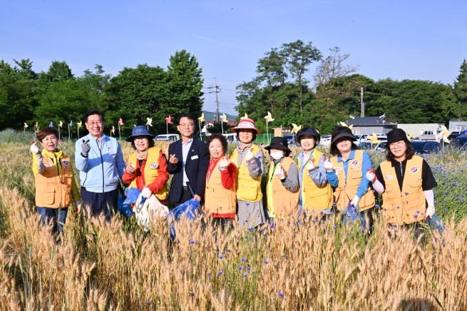 [뉴스서울] 전진선 양평군수가 5일 오전 7시, 아름다운 청운면 밀밭 일대에서 군 공무원, 청운면 15개 기관·단체장, 회원 등 약 200여 명과 함께 ‘제2회 양평 밀 축제’ 손님 맞이 대청소에 나섰다.