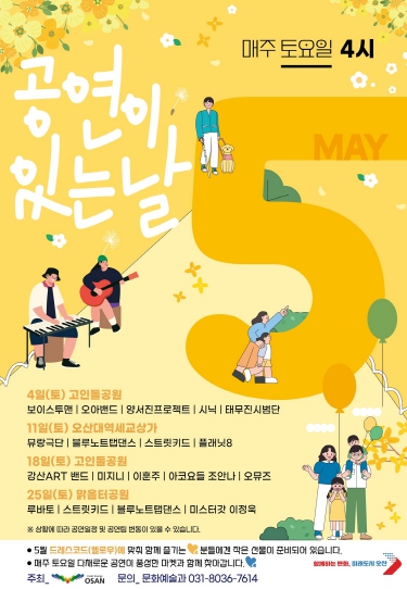 [뉴스서울] 오산시는 2024 야외 상설공연 '공연이 있는 날'이 4월‘벚꽃잇데이’ 공연을 시작으로 더 풍성한 5월 공연을 준비하고 있다고 밝혔다.