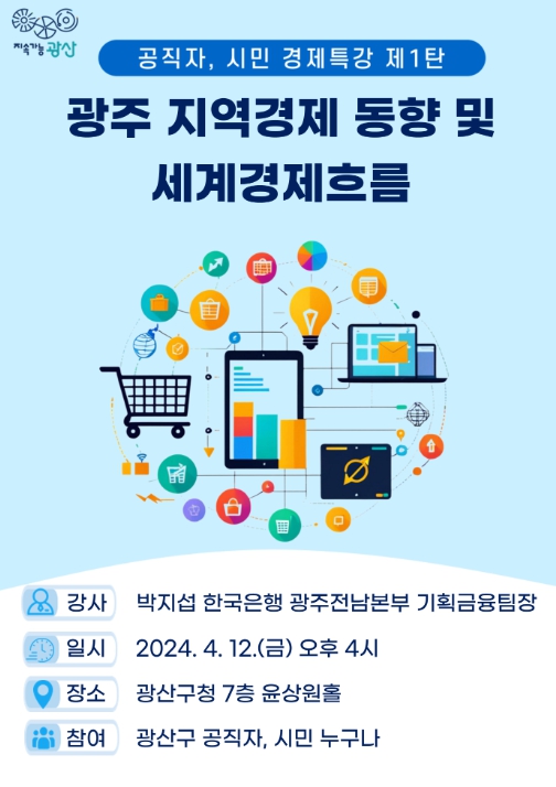 12일 광산구청 7층 윤상원홀에서 열리는 첫 강연은 20년 이상 실물경제 현장을 경험한 박지섭 한국은행 광주전남본부 기획금융팀장이 강사로 나선다.