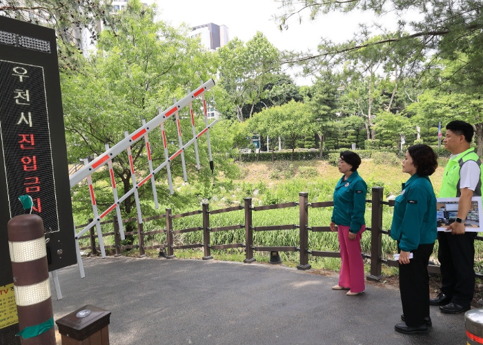 이날 신계용 시장을 비롯한 시 관계자들은 하천 출입통제시스템의 정상적인 작동과 방송 장비의 성능, 야간 시간대 시인성 등에 대해 점검을 했다.