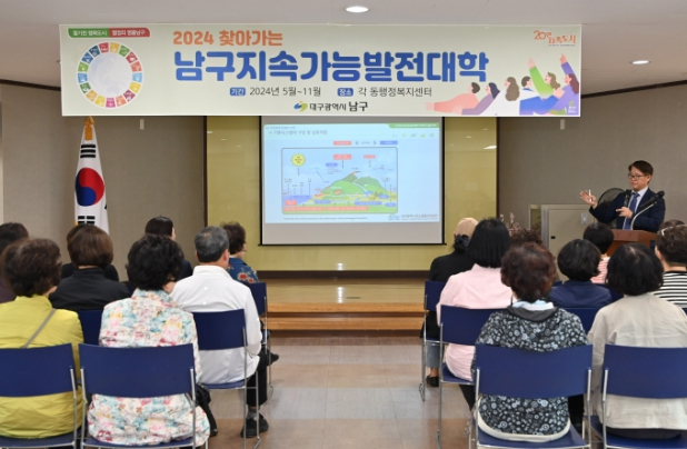 [뉴스서울] 대구 남구는 지속가능발전 인식 확산 및 실천력 강화를 위해 '2024 찾아가는 남구 지속가능발전대학'을 운영한다고 10일 밝혔다.