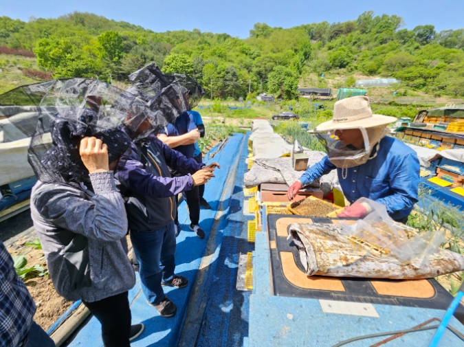 시민체험양봉장은 4월에 시작해 채밀이 완료되는 시기까지 운영되며, 이날 양봉장에서는 체험 양봉 일정 안내, 양봉 교육, 꿀벌과 친해지기 등이 진행됐다.