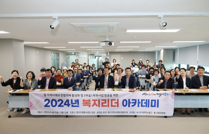 [뉴스서울] 대구 중구는 중구자원봉사센터에서 동 지역사회보장협의체 위원 등을 대상으로 복지리더를 양성하기위한 ‘복지리더 아카데미’를 내달 16일까지 운영한다.