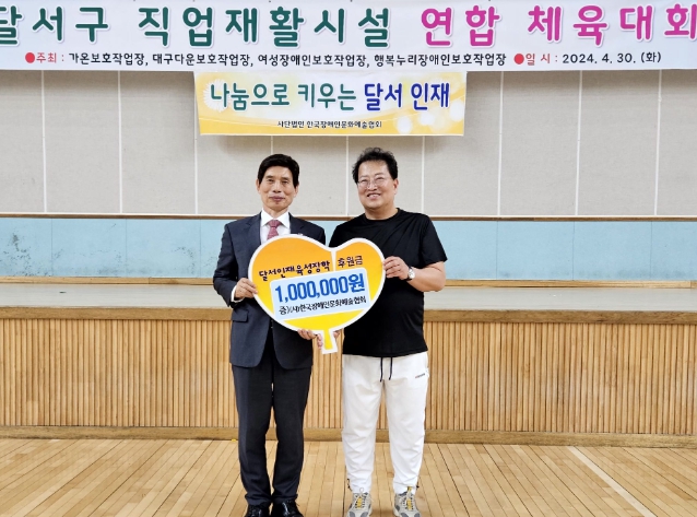[뉴스서울] 대구 달서구가 지난 30일 달서구 장애인직업재활시설 연합회에서 제1회 연합 체육대회 개최 및 체육대회 시 달서구 인재육성재단에 100만원의 성금을 기탁했다고 밝혔다.