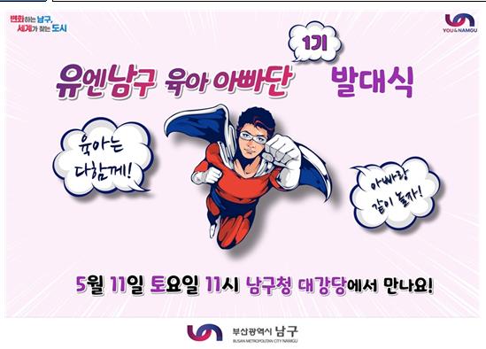 [뉴스서울] 부산 남구는 오는 11일 남구청 대강당에서‘유엔남구 육아아빠단’1기 발대식을 개최한다.