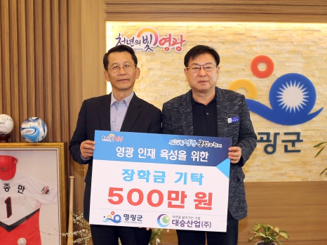 ▲ 대승산업(주), 영광군인재육성기금 장학금 5백만 원 기탁 |