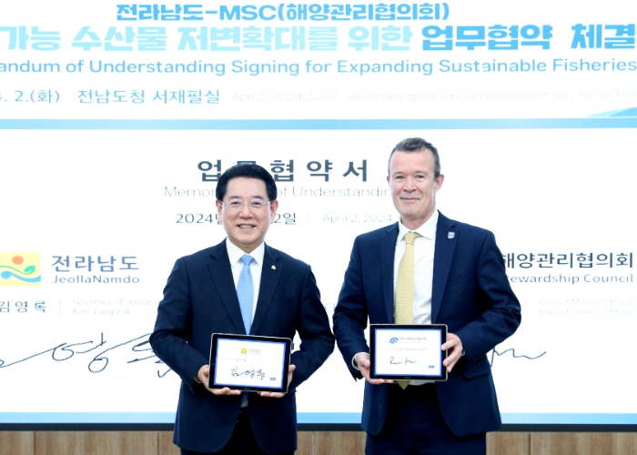 [뉴스서울] 전라남도는 2일 해양관리협의회(MSC)와 지속가능한 수산물 저변 확대를 위한 상호협력 업무협약을 했다.