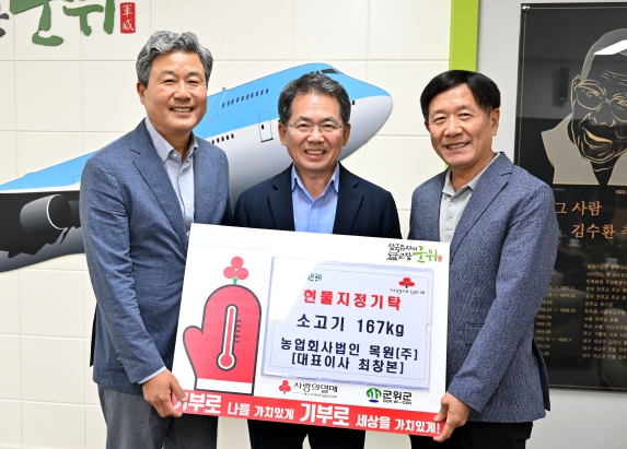 [뉴스서울] 군위군은 지난 30일 농업회사법인 목원(주)에서 관내 사회복지시설 3개소에 167kg(320만원 상당)의 소고기를 기탁했다고 전했다.