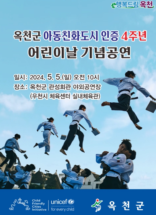 또한 유니세프 아동친화도시 인증 4주년을 기념해 5월 5일 어린이날 10시 관성회관 야외공연장(우천시 옥천체육센터 실내체육관)에서 아동을 위한 다채롭고 풍성한 공연을 선보인다.