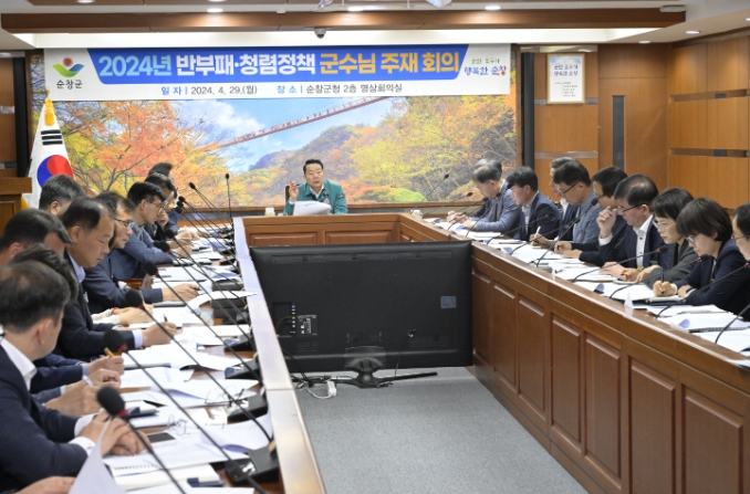 [뉴스서울] 순창군은 29일 군청 영상회의실에서 최영일 군수의 주재하에 반부패 및 청렴 정책 강화를 위한 부서장 회의를 개최했다고 밝혔다.