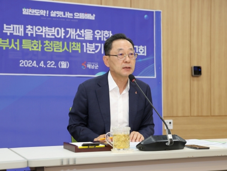 명현관 해남군수는“군정의 여러 정책이 효과를 거양 한다고 하더라도 청렴에 실패하면 모든 정책들이 빛을 바래기 마련이다”며“청렴을 통한 신뢰행정 구축을 위해 해남군의 모든 역량을 결집하자”고 말했다.
