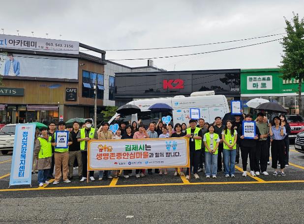 [뉴스서울] 김제시는 19일 터미널 사거리 일대에서 52개 생명존중안심마을 민관 협약기관과 함께 자살예방에 대한 올바른 인식개선과 정신건강 서비스 접근성 강화를 알리고자 캠페인을 실시했다고 밝혔다.
