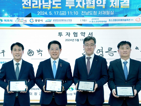 협약식에는 김영록 전남도지사와 박현 포스코인터내셔널 본부장 등 4개 기업 대표, 박홍률 목포시장 등이 참석했다.