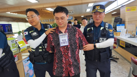 이번 모의훈련은 최근 빈번하게 발생하는 악성민원으로부터 직원을 보호하고 비상 상황 발생 시 경찰과의 유기적인 협력을 통한 신속한 대응으로 2차 피해 예방과 민원 공무원과 방문 민원인의 안전을 확보하고자 마련됐다.