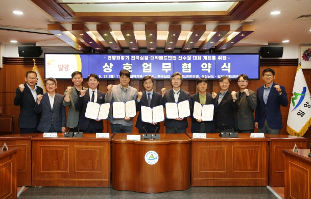 [뉴스서울] 밀양시는 지난 27일 시청 소회의실에서 한국 연맹회장기 전국실업·대학배드민턴 선수권대회의 성공적인 개최를 위한 협약을 체결했다고 밝혔다.