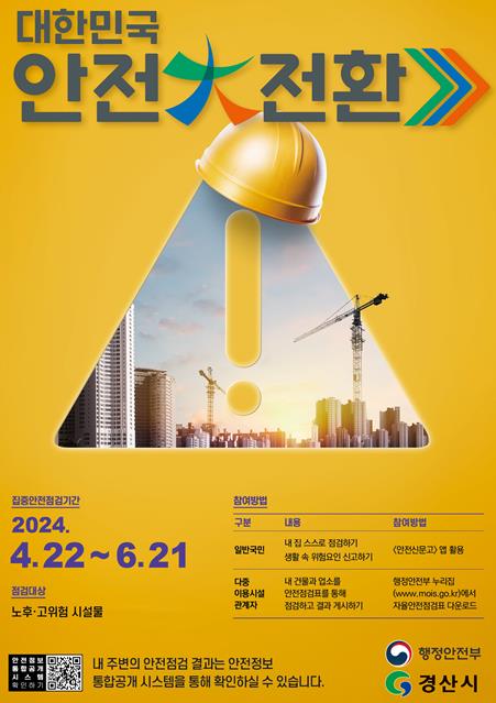 [뉴스서울] 경산시는 22일부터 6월 21일까지 61일간 범국가적 재난 사전 예방 활동인 대한민국 안전대(大)전환을 추진한다.
