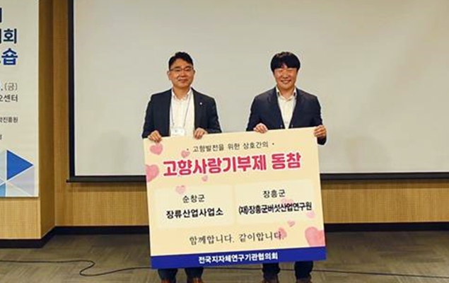 [뉴스서울] 장흥군버섯산업연구원이 순창군장류산업사업소와 함께 고향사랑기부제 교차 기부를 진행했다.