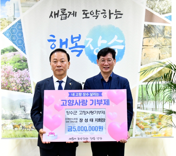 장성태 전북지회장은 “이번 기부를 통해서 장수군이 더욱 발전할 수 있도록 작은 힘이나마 보탤 수 있어 기쁘다”라고 소감을 전했다.