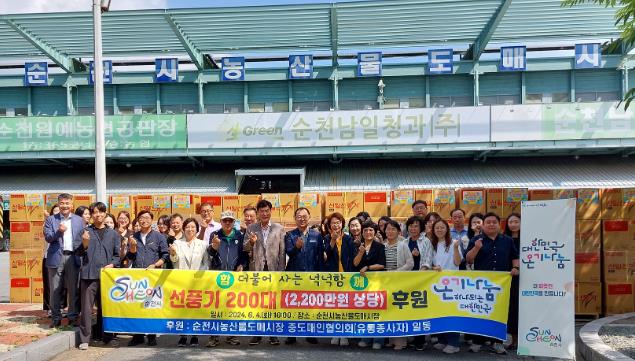 [뉴스서울] 순천시는 지난 4일 순천시농산물도매시장 중도매인협의회에서 2,200만원 상당의 선풍기 200대를 기탁했다고 밝혔다.