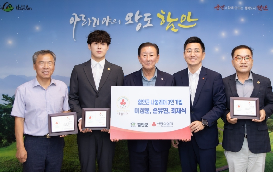 이번에 선정된 제6 에서 8호 함안군 나눔리더는 △이장훈 전국노래자랑 함안군편 인기상 수상자 △손유현 함안재향경우회 회장 △최재식 함안라이온스클럽 회장으로 이들은 1년 안에 100만 원 이상 일시 기부 또는 기부 약정한 사람에게 주는 인증패를 수여받았다.