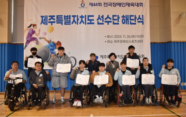 [뉴스서울] 제주특별자치도 선수단 해단식이 지난 26일 제주장애인스포츠센터 2층 체육관에서 본부임원, 입상종목 감독 및 지도자, 선수, 가맹경기단체장 유관기관 등 150여 명이 참석한 가운데 개최 됐다.