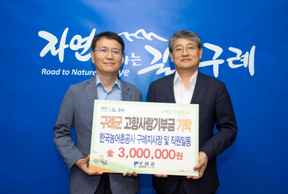 [뉴스서울] 한국농어촌공사 구례지사는 작년에 이어 올해도 구례군의 지속적 발전과 성장을 응원하는 구례지사 직원과 전남지역본부 내근 직원들의 마음을 모아 구례군에 고향사랑 기부금 300만 원을 기탁했다고 밝혔다.