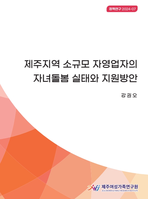 [뉴스서울] 제주여성가족연구원은 제주지역 소규모 자영업자의 자녀돌봄 실태를 도출하고, 이를 토대로 자영업자들의 돌봄 여건 개선을 위한 대안을 마련하기 위해 '제주지역 소규모 자영업자의 자녀돌봄 실태와 지원방안' 연구보고서를 발간했다.