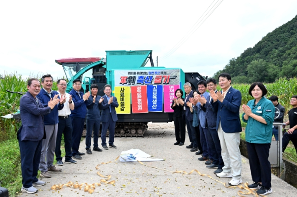 [뉴스서울] 군위군 농업기술센터 농정축산과는 지난 28일 한우농가 경쟁력 확보 및 경축순환농업 실천을 위해 하계 조사료 옥수수 수확 시연회를 개최했다.