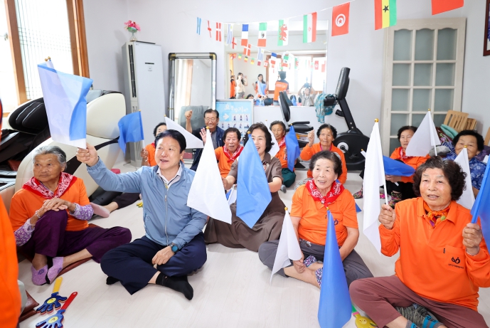 이날은 특별히 이병환 성주군수도 스마트 똑띠학교 경로당 중 중점으로 운영하는 성주읍 대황1리 경로당을 방문하여 70명의 어르신들과 5가지의 협응력, 집중력, 순발력, 통합인지, 기민성이 필요한 미니게임에 참여했으며 참여하는 모두가 각 마을의 승리를 위해 열심히 게임에 참여하여 경로당의 열기를 후끈 데웠다.