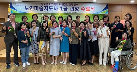 [뉴스서울] 청도군은 지난 20일 여성회관 종합교육장에서 수료생 18명이 참석한 가운데 지역특화 여성취업교육 ‘노인미술지도사 1급 자격 과정’ 수료식을 가졌다.