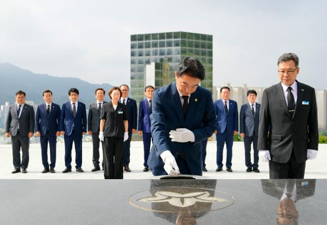 [뉴스서울] 경상남도의회 최학범(김해1, 국민의힘) 의장을 비롯한 후반기 의장단이 7월 1일 국립 3.15민주묘지 참배를 시작으로 공식 일정에 돌입했다.