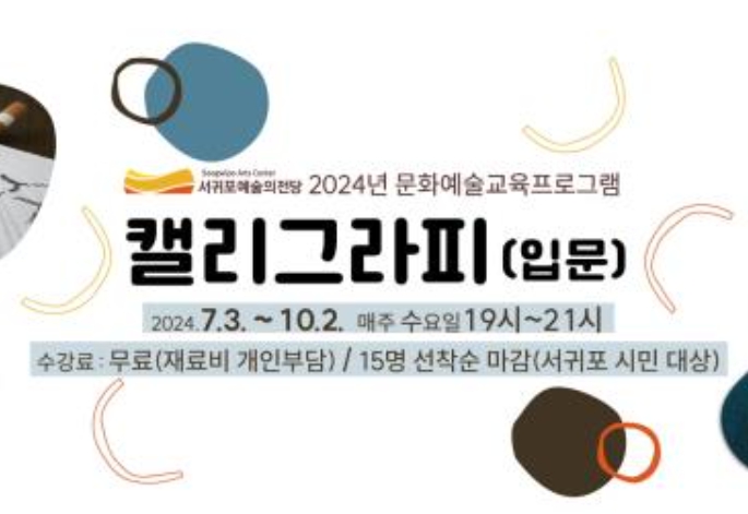 [뉴스서울] 서귀포시 서귀포예술의전당은 오는 6월 12일부터 2주간 2024년 문화예술교육프로그램'캘리그라피(입문)'수강생을 모집한다고 밝혔다.