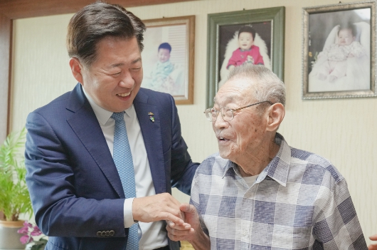 정두욱 씨는 도내 전상군경 중 최고령자로 올해 100세이다. 6.25전쟁 중 양쪽 다리에 포탄을 맞아 상이를 입었다. 전투 중 혁혁한 공적을 세워 화랑무공훈장을 수여받은 국가유공자다.