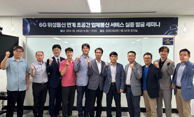 제주TP 미래융합사업본부 미래산업센터는 지난 28일 센터 회의실에서 중앙전파관리소, 한국전자통신연구원(ETRI), 한화시스템㈜, ㈜에이티비스, 산학융합원, 산학협력단 등 관련기관 전문가들이 참여한 가운데 6G 위성통신 연계 초공간 입체통신 서비스 실증 발굴을 위한 세미나를 개최했다.