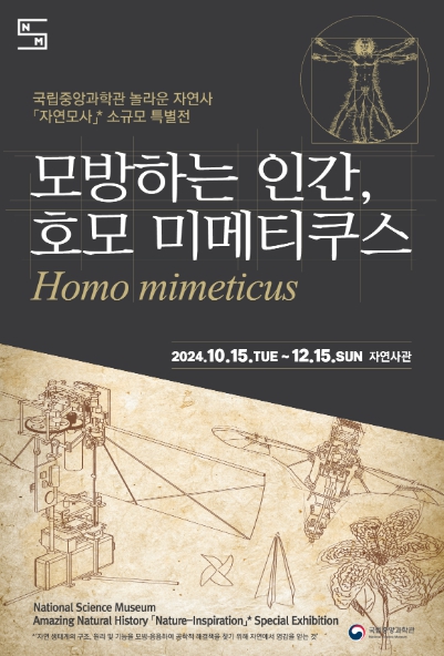 [뉴스서울] 국립중앙과학관은 소규모 자연모사* 특별전『모방하는 인간, 호모 미메티쿠스(Homo mimeticus)』를 10월 15일부터 12월 15일까지 자연사관에서 개최한다. 이번 전시는 자연으로부터 얻은 영감이 실제 우리 삶 속에 활용된 사례와 최신 연구 현황 등을 소개하여 국내 자연모사기술의 현재와 미래를 동시에 체험할 수 있게 마련됐다.