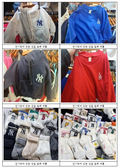 상표경찰은 지난 2월에 서울 동대문‧남대문 일대 의류전문 도매매장(7개소)을 집중단속해 MLB 관련 위조상품을 판매한 A씨 등 도매업자 7명을 상표법 위반 혐의로 불구속 입건한 바 있다.