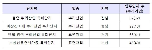 ▲ (신규 지정) 율촌 뿌리산업 특화단지 등 4개 단지 |