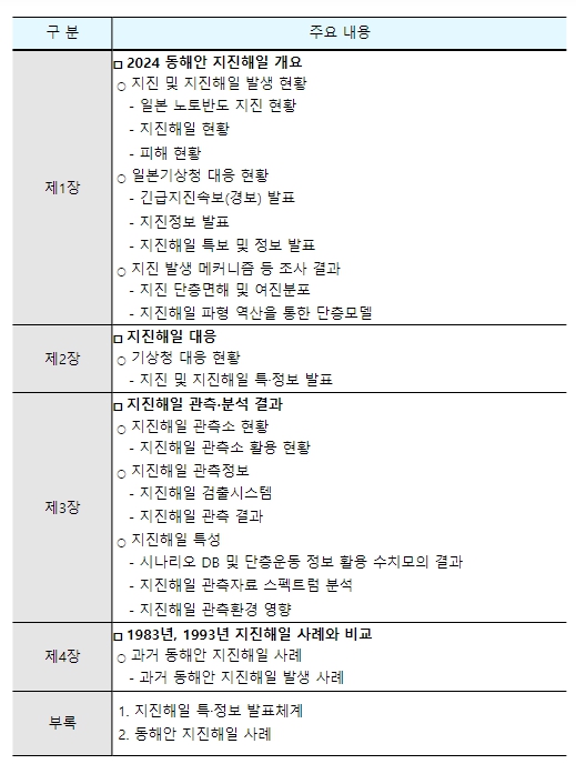 ▲ 2024 동해안 지진해일 분석보고서 주요 내용 |