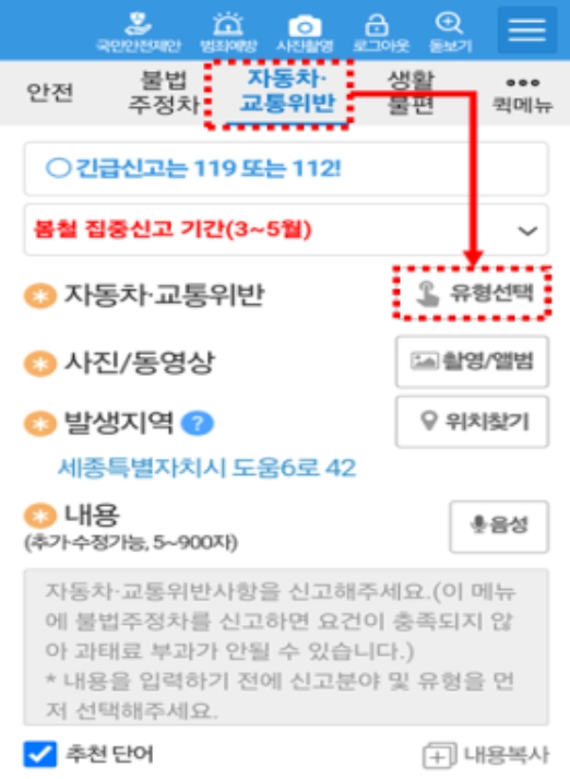 ▲ 안전신문고 앱‘자동차·교통위반’신고방법 |