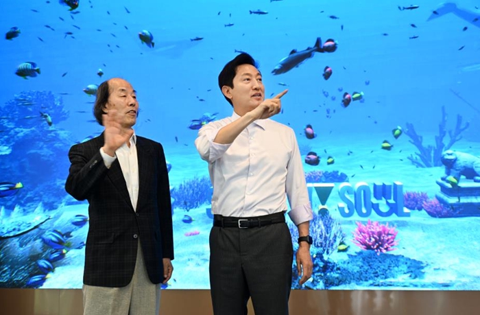 오 시장은 안내데스크, 미디어월, 열린민원실, 로봇카페, 휴식공간 등 바뀐 로비 공간을 둘러보고, 방문객 ‘환대’에 초점을 맞춰 시민들이 즐길 수 있게 변경된 것을 보며 보람을 느낀다고 말했다.
