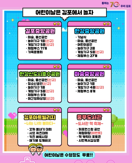 온 가족이 함께 할 수 있는 어린이날 행사로 김포에서 즐거운 추억을 만들기 바란다”고 말했다.