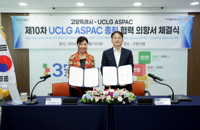 13일 이동환 고양시장과 버나디아 찬드라데위 사무총장은 고양시청에서 2025년 총회를 성공적으로 개최하기 위해 고양시와 UCLG ASPAC 간 제10차 UCLG ASPAC 총회 개최에 관한 의향서에 서명했다.