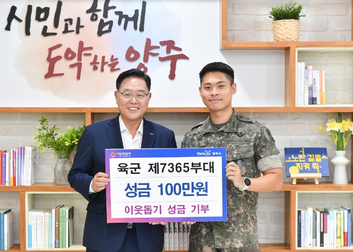 강수현 양주시장은 “작년에 이어 올해에도 소중한 성금을 기부해 주셔서 감사하며 제7365부대의 따뜻한 온정을 어려운 이웃에게 잘 전달하겠다”고 말했다.