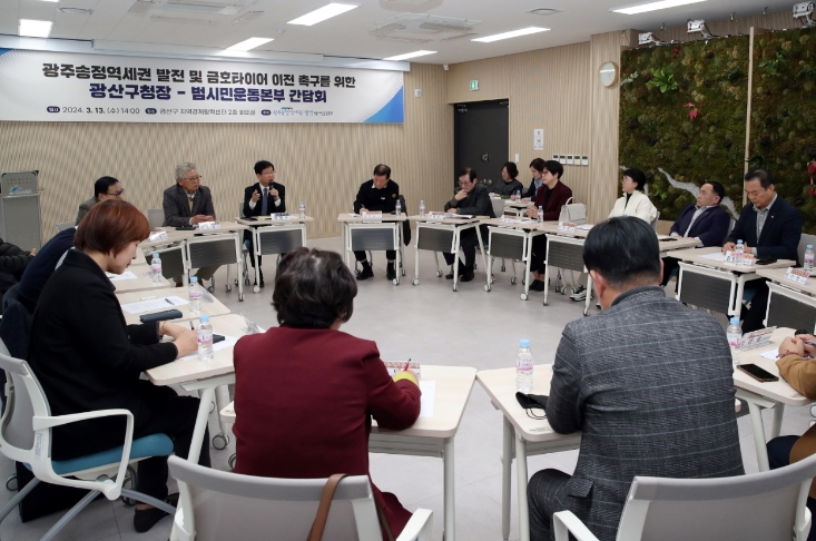 [뉴스서울] 광주송정역세권 발전 범시민운동본부(공동대표 : 임한필․전창현, 이하 범시민운동본부)는 13일에 광산구지역경제활력센터 2층 회의실에서 ‘광주송정역세권 발전 및 금호타이어 이전 촉구를 위한 광산구청장-범시민운동본부 간담회’를 범시민운동본부 임원 및 시민 30여명이 참가한 가운데 개최했다.